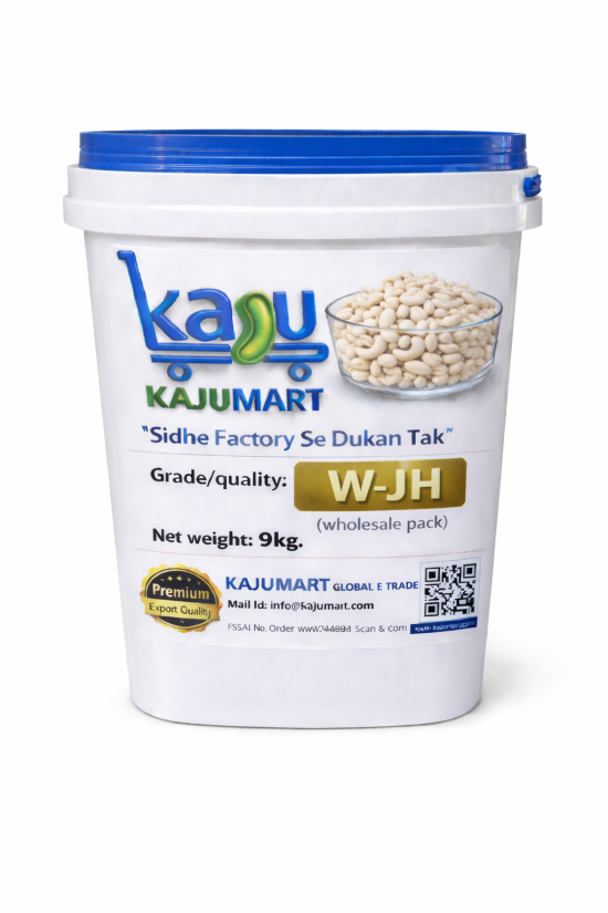 JH / जे एच टूटा काजू एक ऐसा प्रीमियम क्वालिटी ग्रेड है जिसमें पूरे काजू को आड़ा काटकर दो बराबर हिस्सों में चीर दिया जाता है, जिससे साफ और एक समान टूटे हुए काजू के टुकड़े प्राप्त होते हैं। बेहतरीन स्वाद और उच्च गुणवत्ता के कारण यह मिठाई, बेकरी, रेस्टोरेंट और फूड प्रोसेसिंग उद्योग में बहुत लोकप्रिय है। टूटा काजू ग्रेडों में इसे प्रीमियम श्रेणी माना जाता है और यह 9 किलो बकेट / 9 किलो कंटेनर पैकिंग में उपलब्ध है। JH (JH Broken Cashew) is a premium quality cashew grade in which whole cashew nuts are split horizontally into two pieces, giving clean and uniform broken kernels. Known for its rich taste and superior quality, JH broken cashew is widely used in sweets, bakery, restaurants, and food processing. It is considered one of the finest grades in broken cashew and is available in 9 kg bucket / 9 kg container packaging.